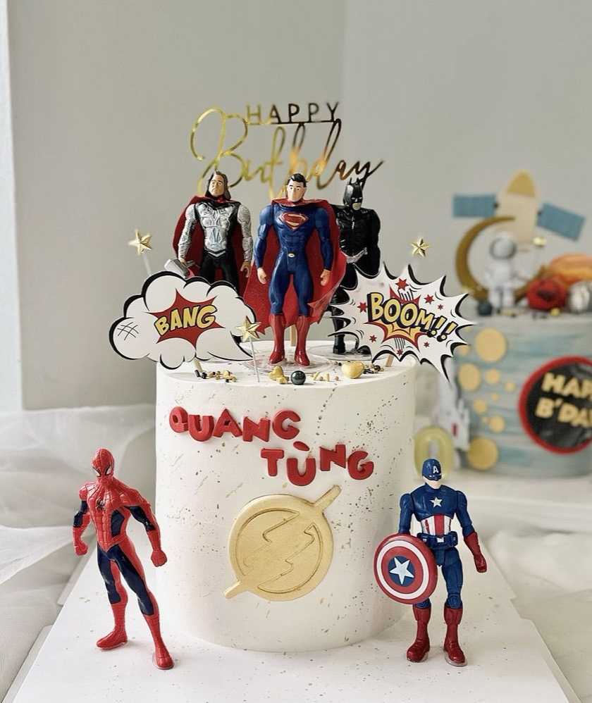 | Kỷ niệm/Tân gia (Đối tác, Đồng nghiệp) | Chọn bánh kem siêu anh hùng với thiết kế sang trọng, ít hoạt hình hơn. | Thể hiện sự trân trọng và gu thẩm mỹ tinh tế |
